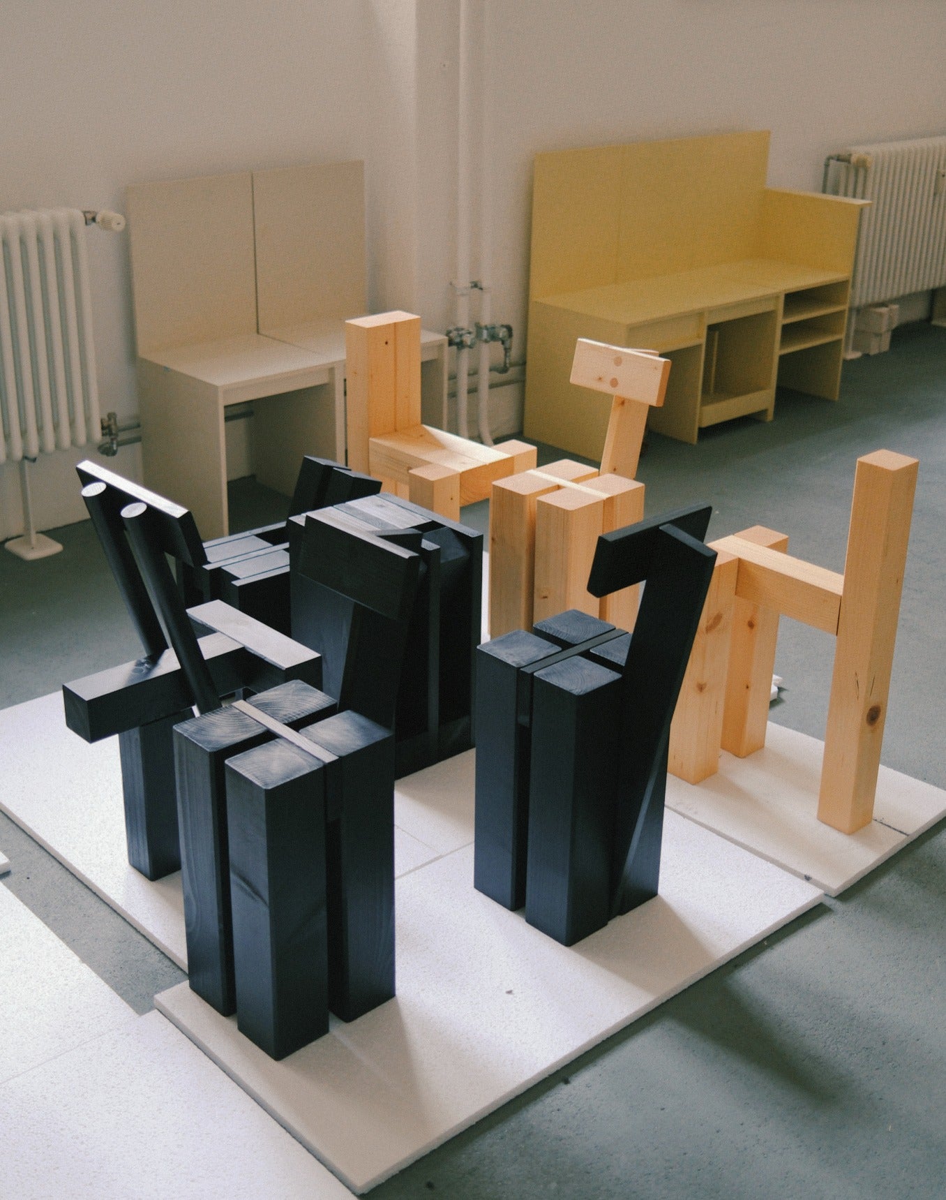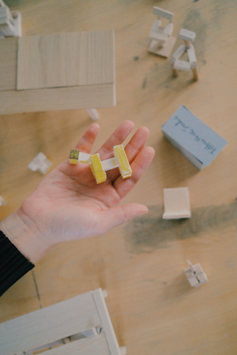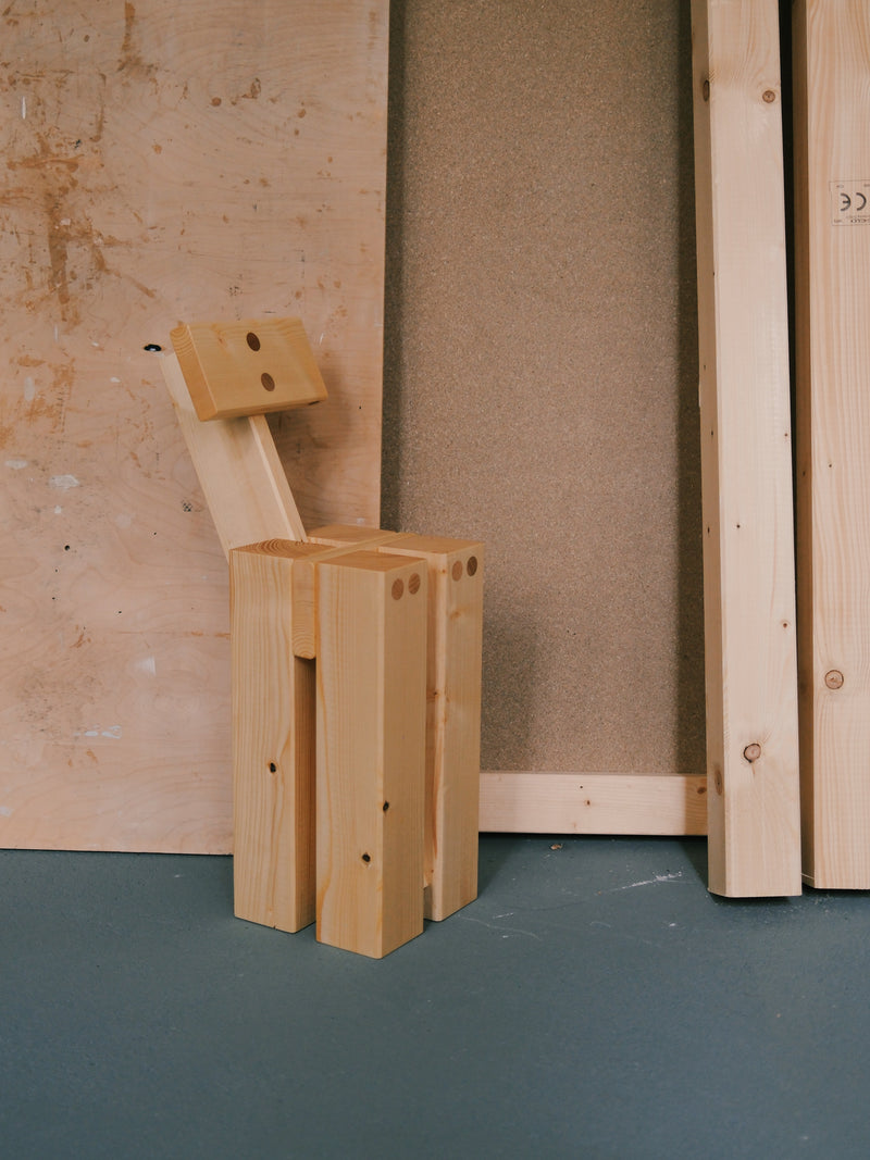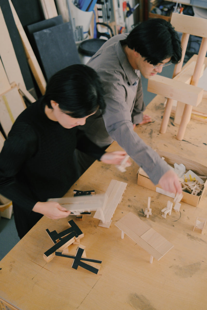 At the heart of their work lies a spirit of playfulness — most vividly embodied in their ongoing “INDERGARTEN” collection. The name, formed by gently removing the “K” from kindergarten, hints at the openness of childhood exploration. Inspired by their young daughter, Muyi, Ho and Tung began observing how curiosity and instinct shape creative discovery. What started as moments of stacking wood offcuts in their Berlin studio grew into a philosophy of making: intuitive, imperfect, and deeply human. Like Froebel’s original idea of learning through play, INDERGARTEN reflects a return to first principles — a celebration of how imagination, care, and touch can shape both design and life itself.
